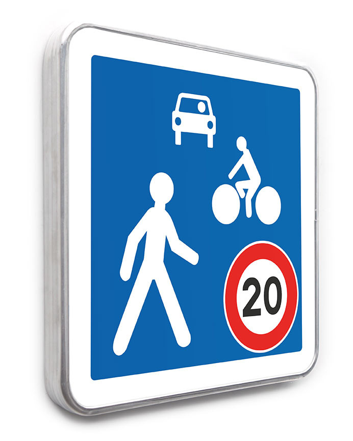 Dans cette rue à sens unique pour les voitures, les piétons sont prioritaires et peuvent circuler sur la chaussée. La vitesse des véhicules est limitée à 20km/h et il est interdit de klaxonner un piéton ! Les cyclistes peuvent circuler dans les 2 sens.